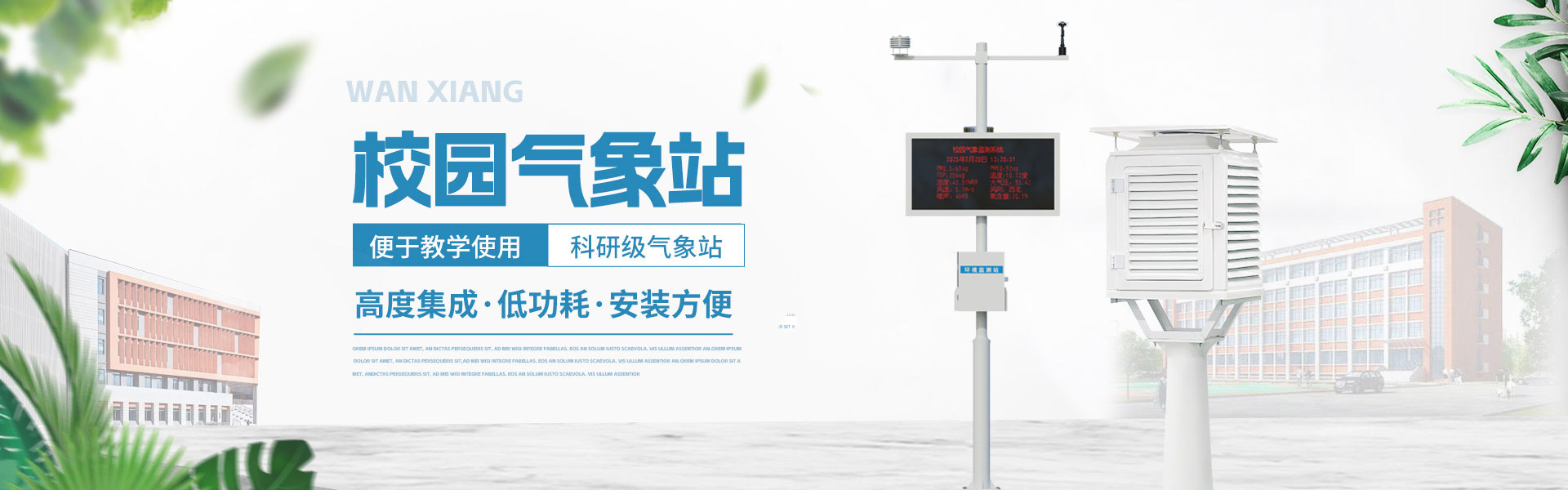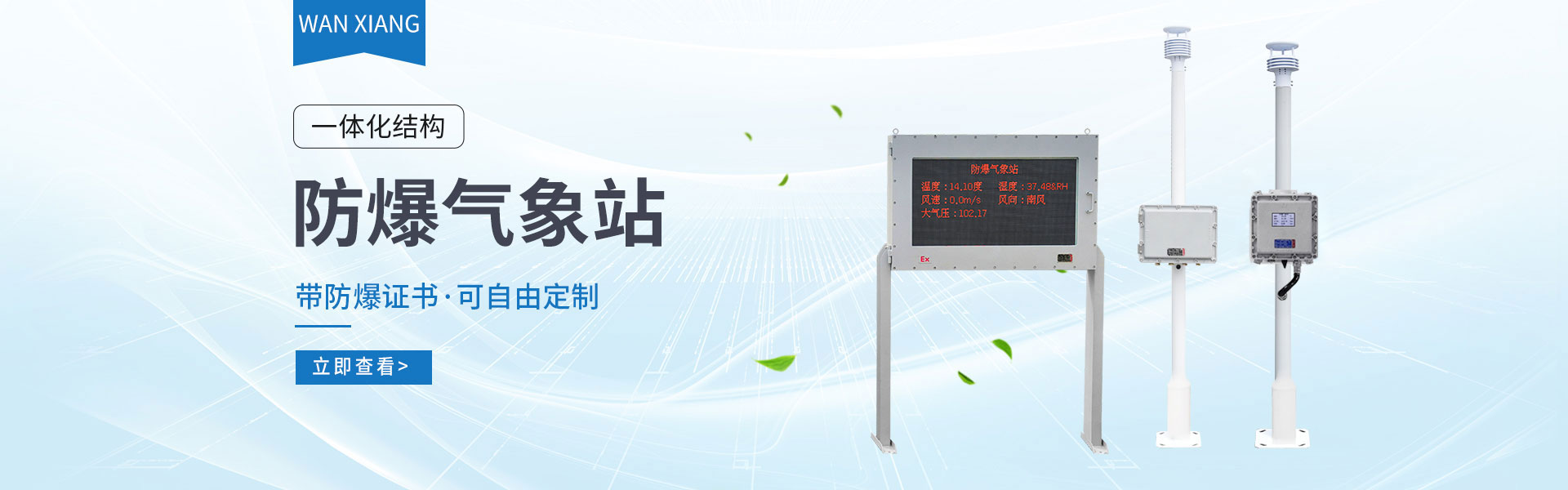 山東萬象環(huán)境科技有限公司官網(wǎng)主要產(chǎn)品有防爆氣象站,校園氣象站,農(nóng)業(yè)氣象站,負氧離子監(jiān)測站,超聲波氣象站,歡迎咨詢13276361891!